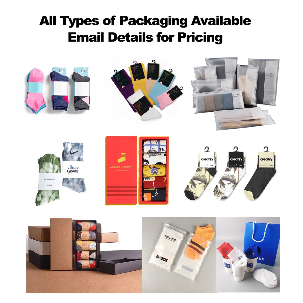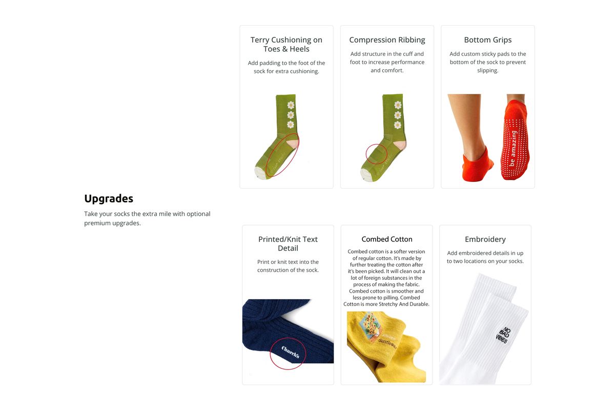 Customization: full artwork placement; up to 5 yarn colors; custom cuff/heel/toe; private label and retail-ready packaging